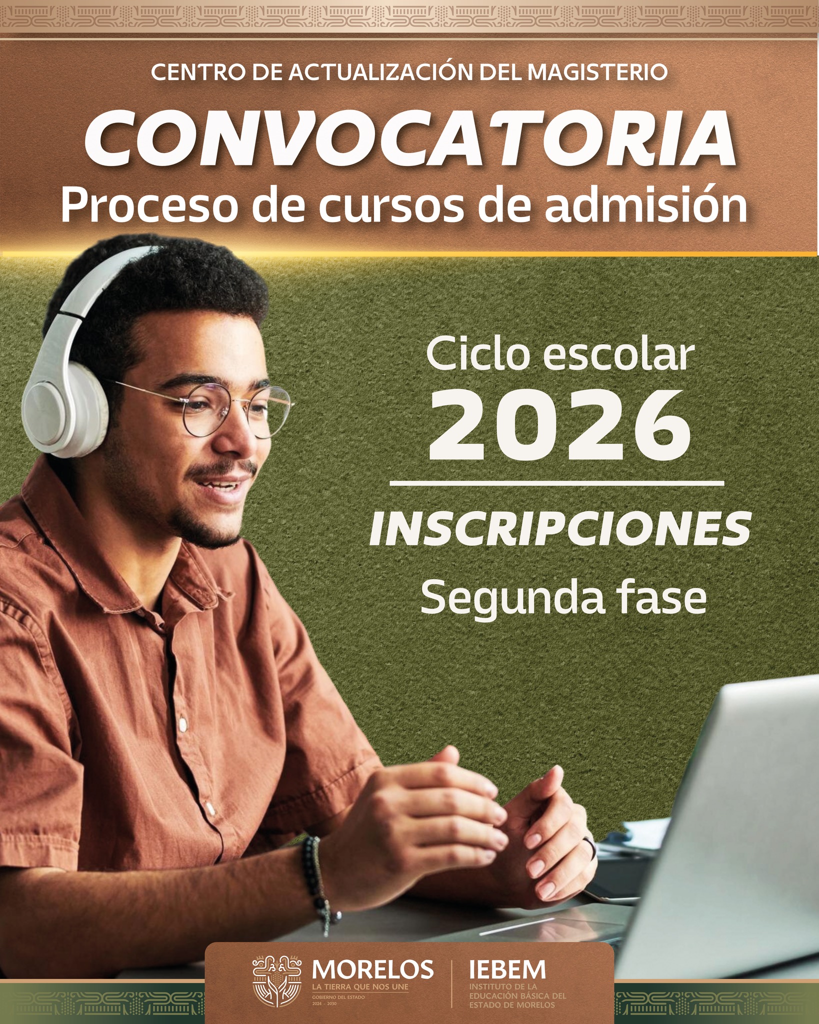 El Instituto de la Educación Básica del Estado de Morelos (IEBEM), a través del Centro de Actualización del Magisterio (CAM), publicará la Convocatoria del Proceso de cursos de admisión en su segunda fase: